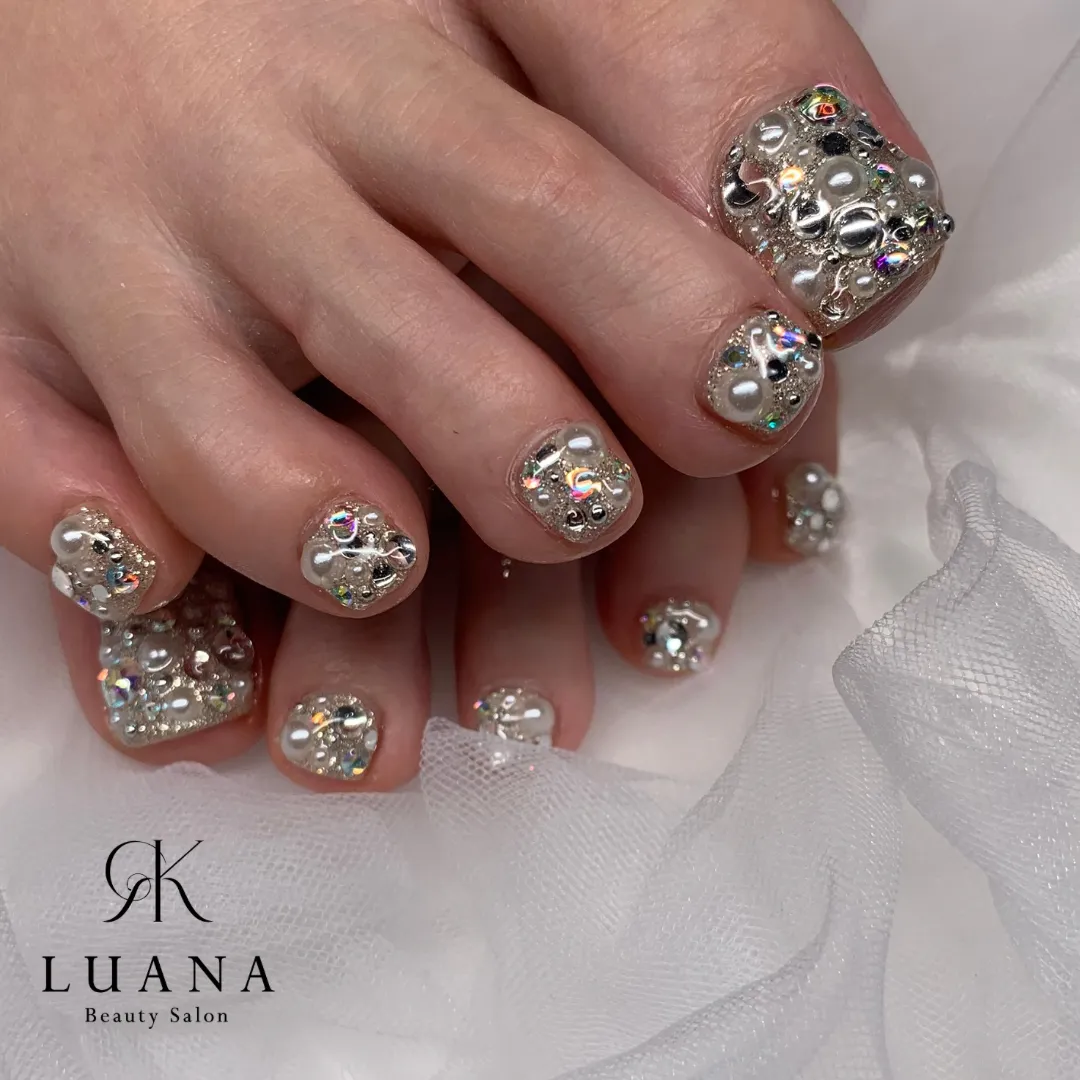 【ストーンFOOT】 \足元からテンション爆上がり/ ぎっしりストーンでキラキラサンダルから見えるたびに 可愛いすぎてニヤケちゃうやつ