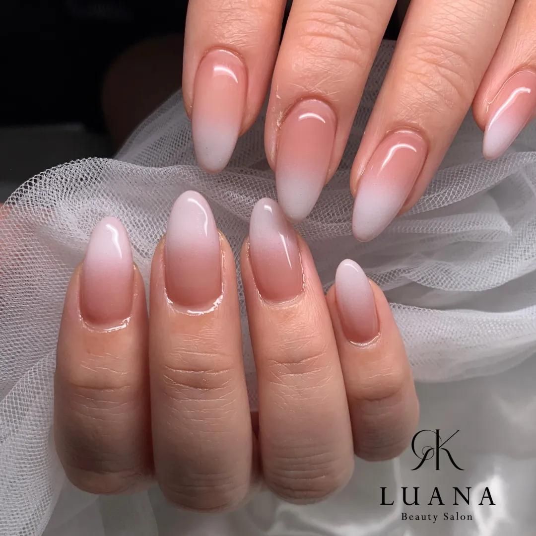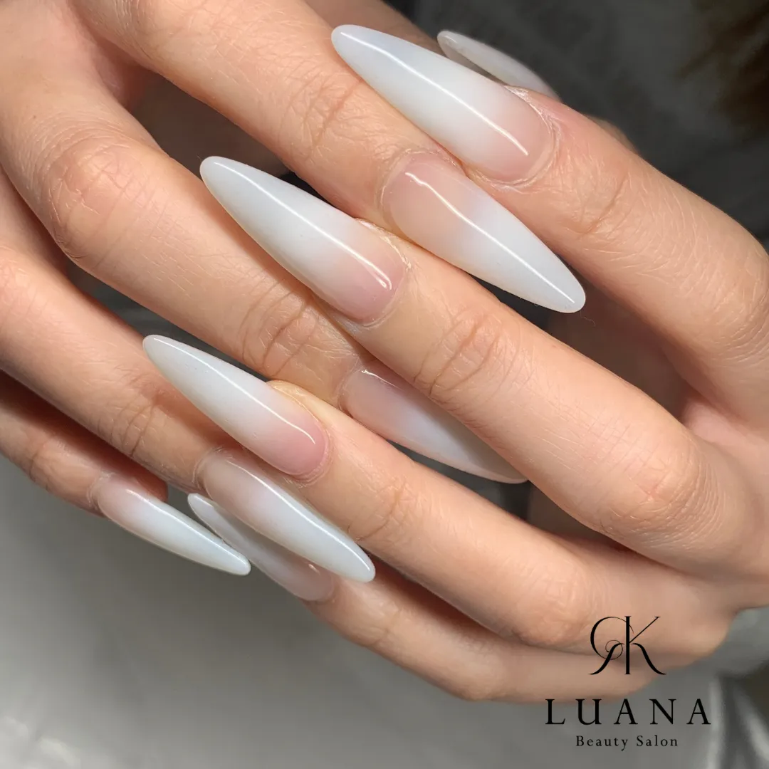 人気デザイン お子様の卒業式に合わせた ホワイトグラデーションネイル 清楚・綺麗・大人っぽく。 どんな装いにもなじむ万能ネイル 完全個室|1対1プライベート空間 人目を気にせずゆっくり過ごせます