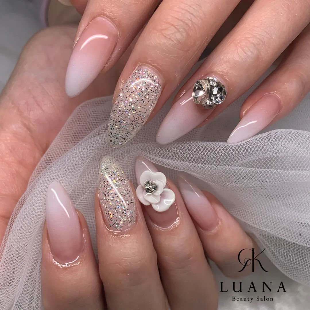 【グラデーションネイル】 ふんわりグラデーションに 3Dフラワー 指先が綺麗に見える 人気のグラデーションネイル