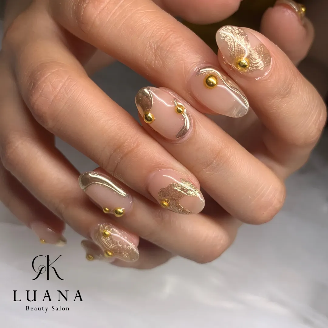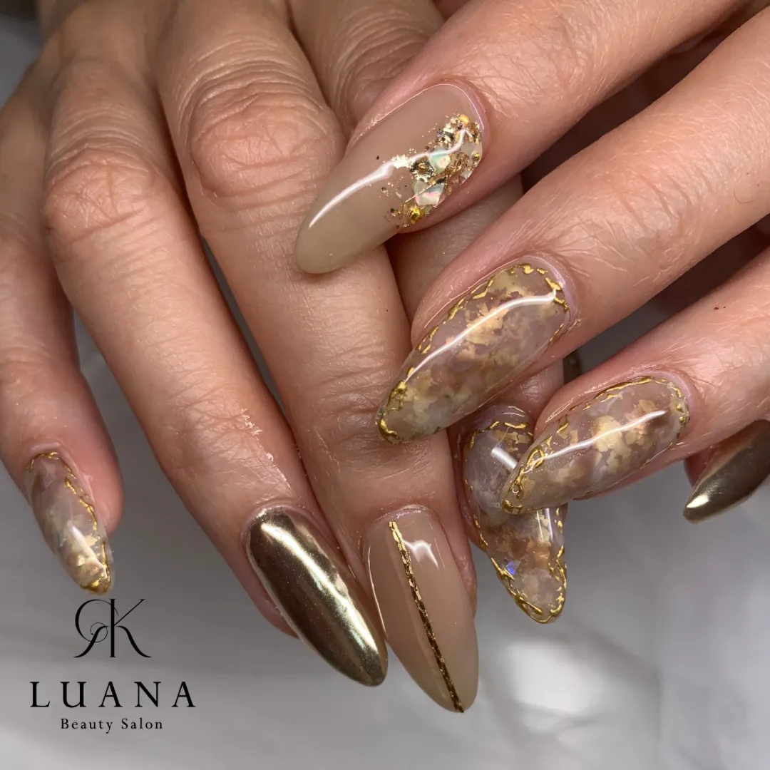 【ミラーネイル】 『ゴールドの気分でウネウネいれよかな?』 って始まった会話のデザインが… お好みのデザインに仕上がりました . 会話の中からヒントをもらって、 ぴったりなデザインを一緒につくる時…