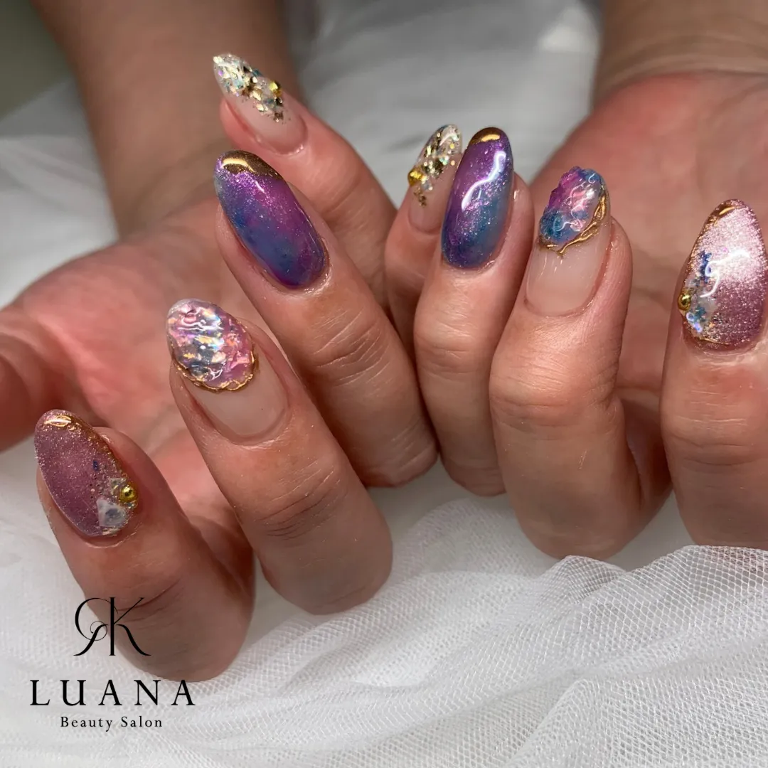 【マグ×ニュアンスネイル.】 サンプルから選んでいただき カラーチェンジ 立体感アートにはオーロラもまぜまぜ カラーを変えるだけで 雰囲気がガラッと変わる-