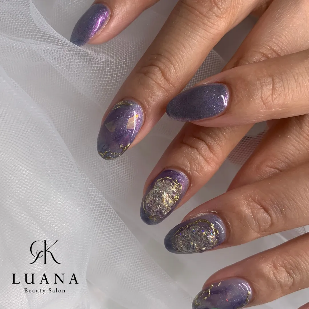 【マグネットネイル】 サンプルからカラーチェンジ 奥行き感ある大人ネイル夏デザインにマグネットネイルが よく出ます