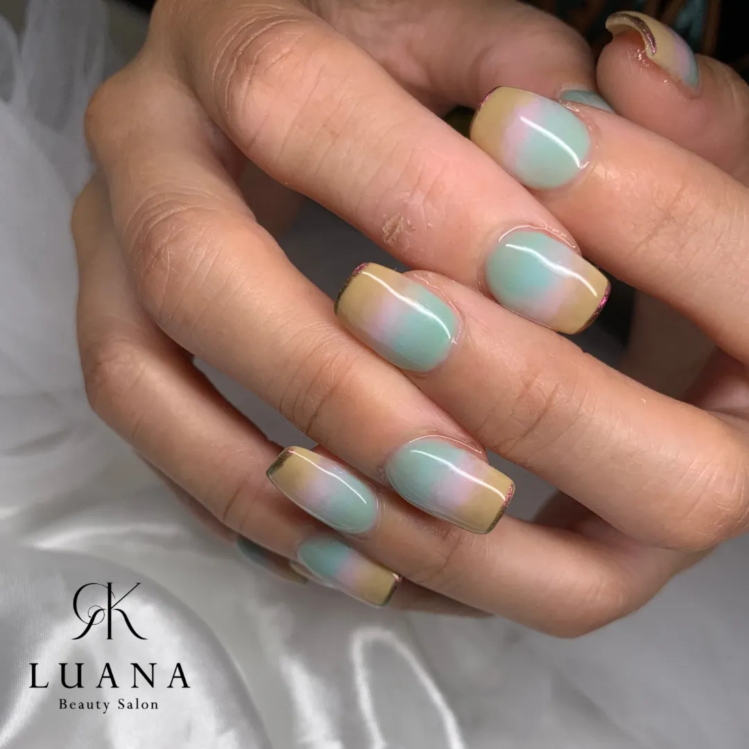 【夏ネイル】 4色のふんわりグラデーションネイル カラフルだけど 主張しすぎない、大人っぽく 大人の夏ネイルにもおすすめです.