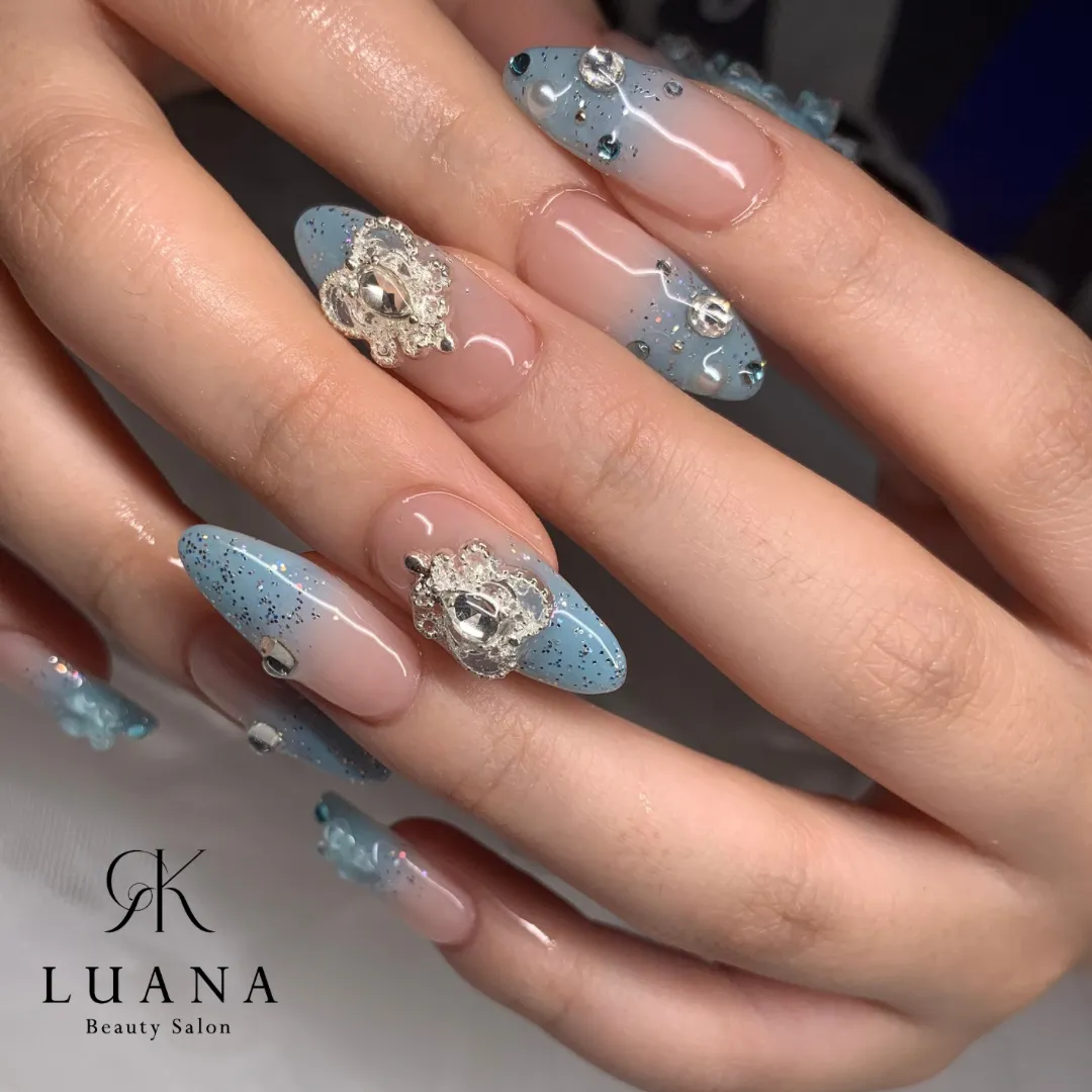【グラデーションネイル】 今回もライブ仕様で 指先から気分上がりますね . 自爪ロングでデザインも映える~ ※パーツは持ち込みになります※