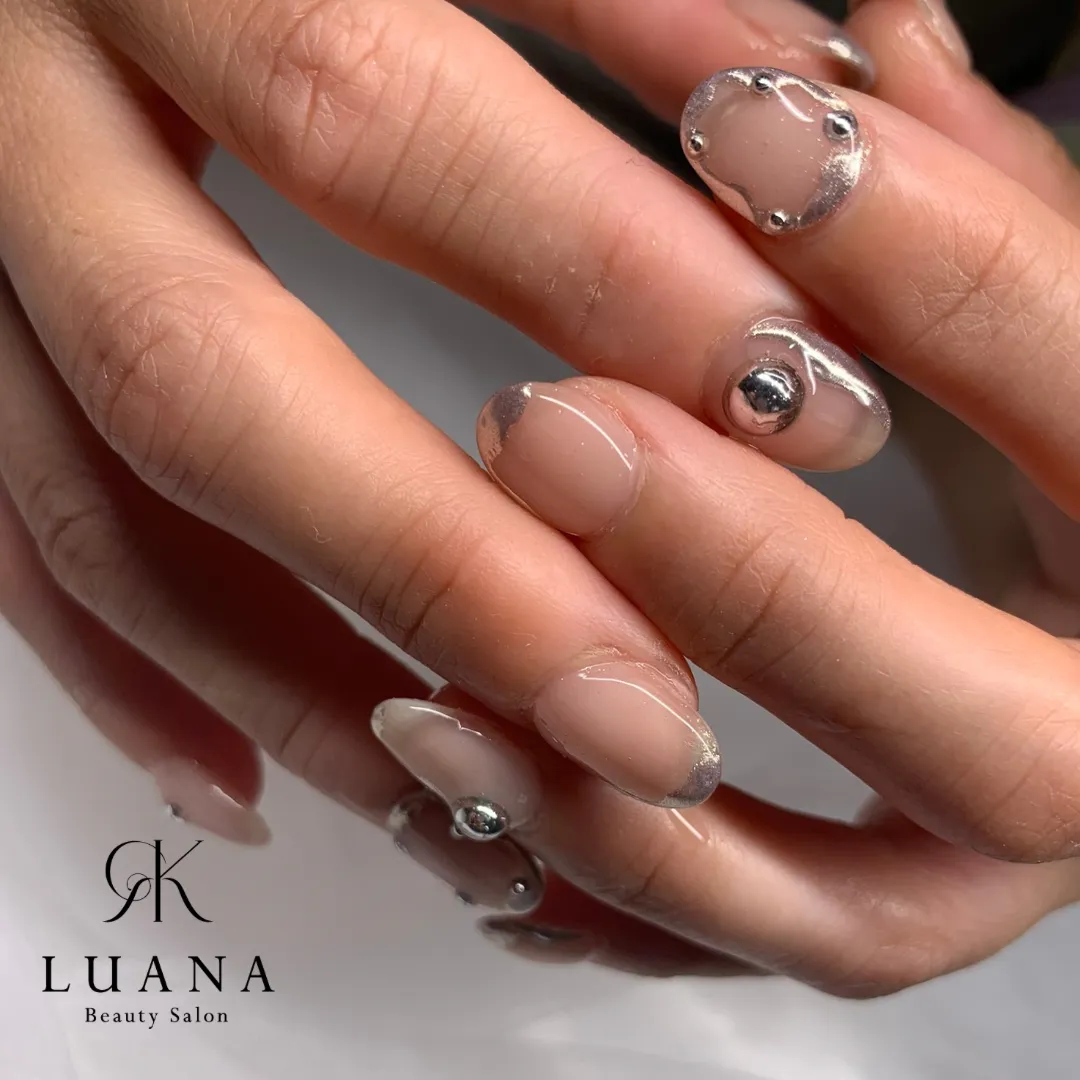 【ニュアンスネイル】 ニュアンス×ミラーネイル ちょっぴり変わったシルバーアートが 個性をプラスオシャレ